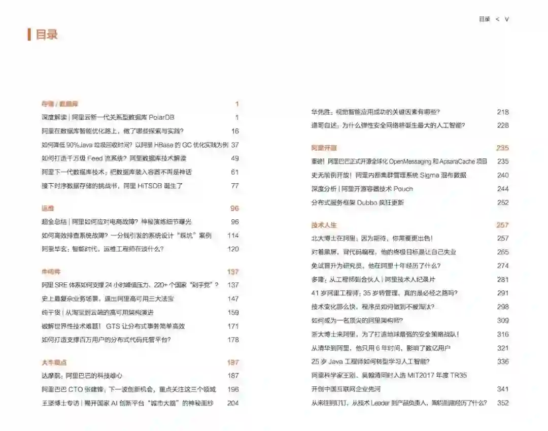 这套精选集汇聚了阿里多个技术团队的倾囊分享,绝大部分来自线上开发实践:从业界前沿的算法、机器学习、大数据等最新技术,到行业标杆的数据库、中间件、运维、安全、移动开发等成熟技术,再到阿里开源技术、大牛观点分享,基本涵盖了阿里巴巴所有技术兵种,内容涉及核心架构、优化算法、解决方案等干货。