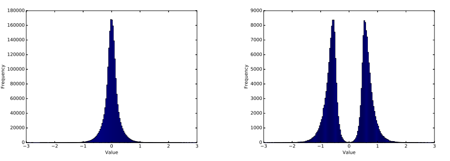 图 1:剪枝前后的权重分布