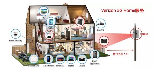 最早实现商用5G服务的是运营商Verizon——去年10月1日,Verizon宣称在美国4个城市推出了5G Home服务,通俗点儿说,也就是家庭宽带服务。Verizon通过基站发射5G信号,用户在家庭中通过CPE设备、再通过WiFi路由器,连接家中的上网设备。
