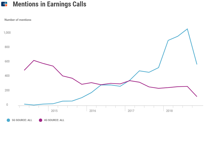 2018第三季度,全美公司财报电话会中提及“5G“的次数超过1000次,相比2017第四季度,增长了100%;