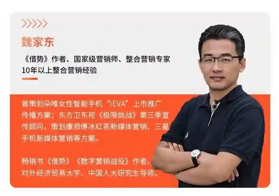 《借势》作者、《极限挑战》第3季宣传顾问、10年以上整合营销经验@魏家东老师将会为你详解: