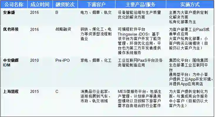非平台类企业则为客户交付最终产品、方案为主,一类企业是直接为客户提供产品化的SaaS应用,比如黑湖智造、海岸线科技;还有一类企业是针对客户的设备生产机理、行业Know-How提供智能化解决方案,比如安脉盛、寄云科技。这些非平台公司内部,尤其是解决方案类公司,往往会在公司内部形成类似PaaS平台的技术中台。