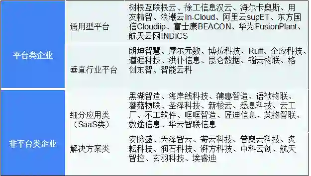 我们曾在文章《近万亿工业互联网赛道有哪些玩家?这里有一份行业图谱》中详细介绍过工业互联网公司的各类模式。概括来讲,可以按照是否有PaaS层简单分成平台和非平台类企业。