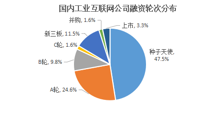 6、工业互联网公司普遍未盈利,仍需外部资金支持。目前A轮之前融资占比72%,随着服务模式逐渐清晰,政策持续推动,预计工业互联网将在投融资市场迎来一波增长;
