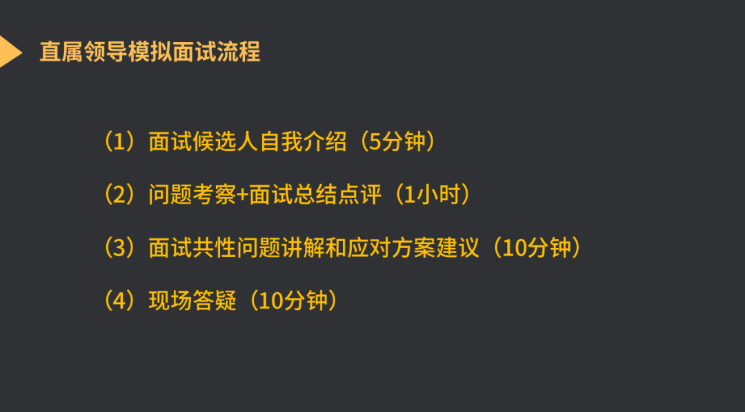 在面试模拟中,导师将扮演产品面试官,另外,我们从起点学院的粉丝中征集了一位正在转岗求职产品的同学作为面试者,我们安排双方进行一次直属领导面试模拟,内容包括: