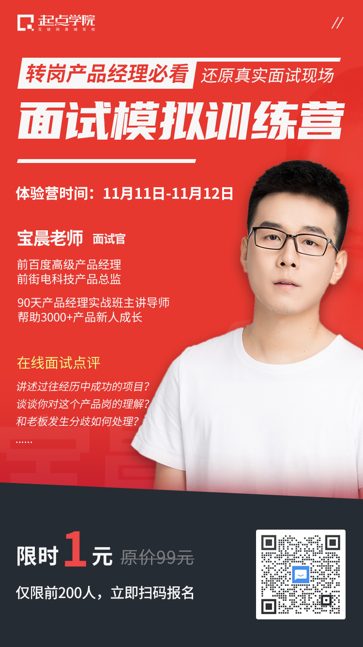所以,为了帮助零基础想入行/转岗的同学,能用正确的产品认知和产品思维去回答好面试官的提问,提升面试的通过率,我们邀请了前百度国际化高级产品经理@宝晨老师为大家做一次面试模拟。