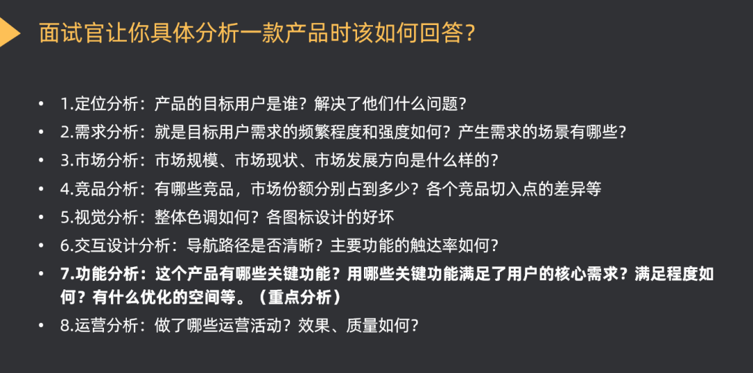 举例来说,在产品面试中最常碰到的问题就是:让你分析一款产品或者问你对某个产品的看法。