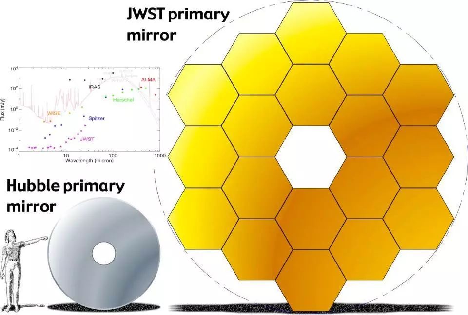 詹姆斯·韦伯(James Webb)拥有七倍于哈勃望远镜的聚光能力,能够看到比远红外线部分更远的光谱,能够观测的星系甚至比哈勃望远镜能观测的还早。图片来源:NASA / JWST