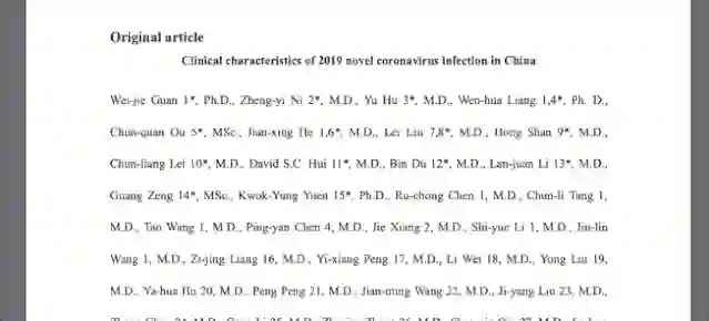 题为Clinical characteristics of 2019 novel coronavirus infection in China。
