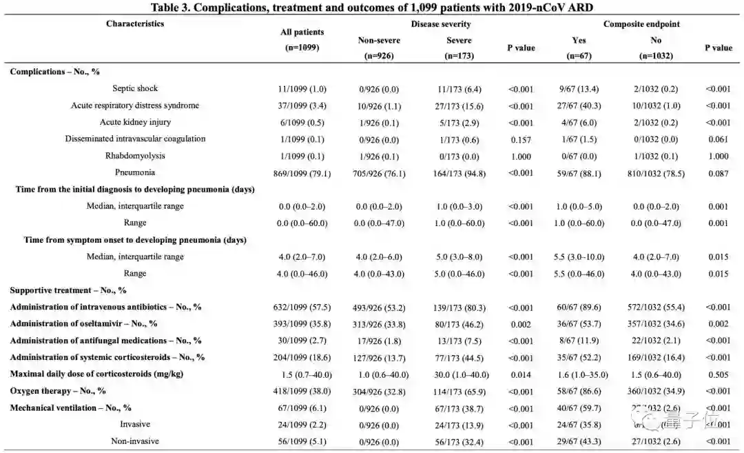 进入ICU、需要有创通气和死亡的患者比例分别为5.00%、2.18%和1.36%。这相当于67例(6.10%)患者达到复合终点,如上表所示。