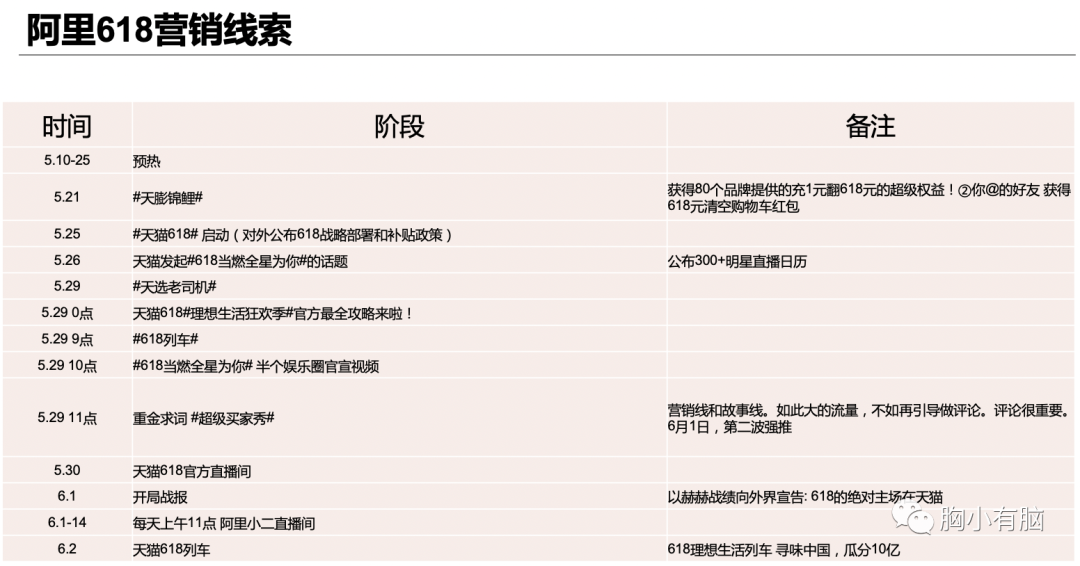 举个栗子,我整理了阿里618在微博上的营销轨迹: