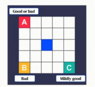 实验设置如图7所示,有三个目的(Object)A、B、C,它们分别具有不同的奖励,A表示不好也不坏,B表示总是坏的,C表示并没有那么好。这些Object在不同的生命周期内不同,通过随机采样产生,在特定的生命周期内是固定的。智能体收集到这三个目的中的任何一个,则该Episode结束。