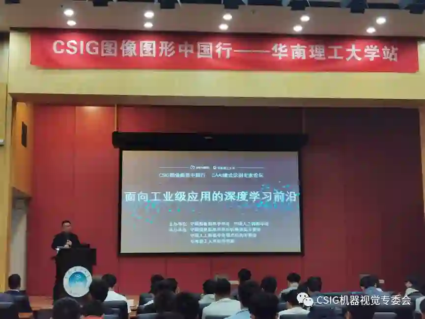 2020年01月09日,历时一天的“CSIG图像图形中国行”和“CAAI模式识别专家论坛”在华南理工大学大学城校区完满落幕。本次论坛由中国图象图形学学会(CSIG)和中国人工智能学会(CAAI)主办,由中国图象图形学学会机器视觉专委会、中国人工智能学会模式识别专委会和华南理工大学软件学院共同承办。论坛主题为“面向工业级应用的深度学习前沿”,旨在推动模式识别、深度学习以及图像图形学科的普及,加深同学对前沿热点和发展现状的了解,激发科研热情,增加与顶尖学者间的学术交流,并促进高校与企业之间的合作与交流。来自广州、北京和香港各大高校的近300名学生和老师、以及30多名来自各大企业和科研机构的研究人员参与了本次论坛。