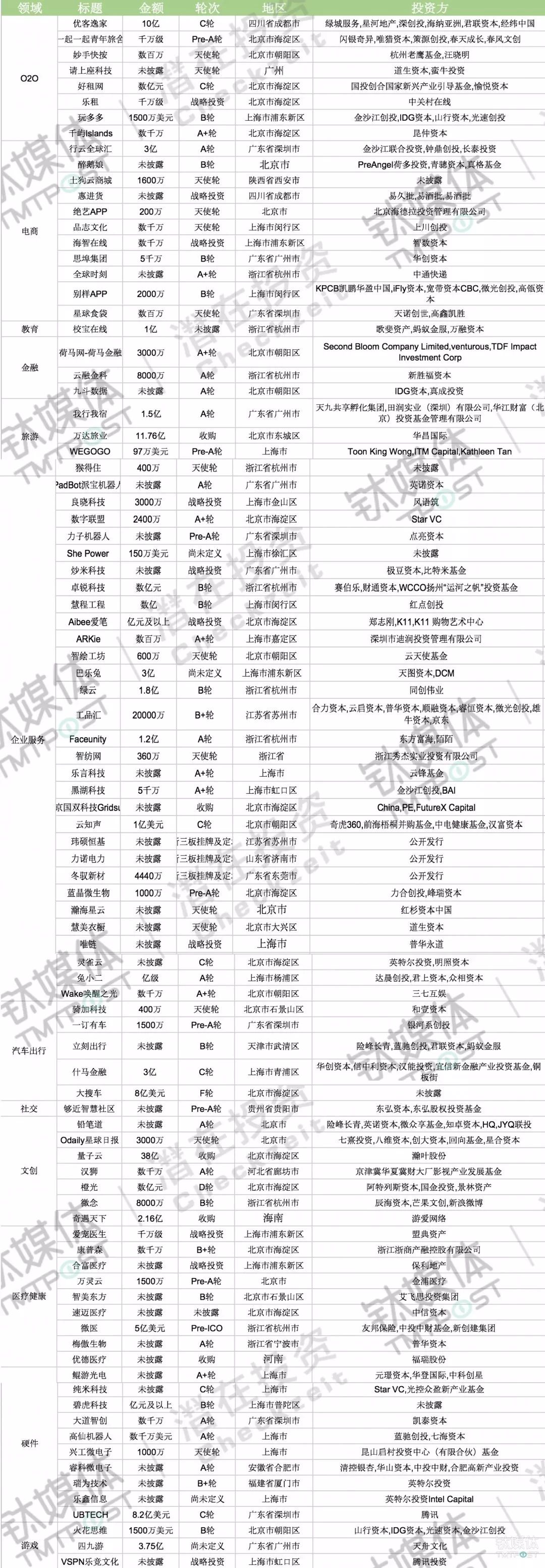 周报:第一时间汇总每周企业投融详情,综合每周投融领域概况;