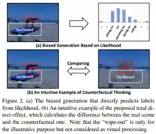 已有的场景图生成容易受有训练偏见的问题,例如将海滩上人类的步行、坐、躺等多样行为类型笼统分为海滩上的人类。这篇论文提出了一种新的基于因果推理的场景图生成的框架。首先建立因果图,然后使用该图进行传统的有偏训练,接着从训练图上得出反事实因果关系,以从不良偏置中推断出影响并将其消除。场景生成基准集Visual Genome上的实验表明这篇论文所提的方法与以前的最佳方法相比有显著改进。