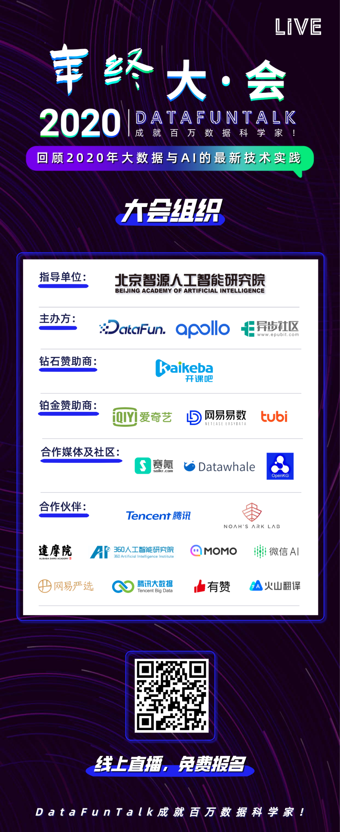 导读:12月19-20日,09:00-18:00,一年一度的 DataFunTalk 年终大会来啦!受疫情影响,以及为了惠及全国各地的小伙伴,本次大会将继续在线上召开,将有超过90位嘉宾,参与本届大会。今天,小编将用3万字,一次为你解锁本次大会的所有议题!(报名方式见文章底部)下面就和小编一起了解下吧: