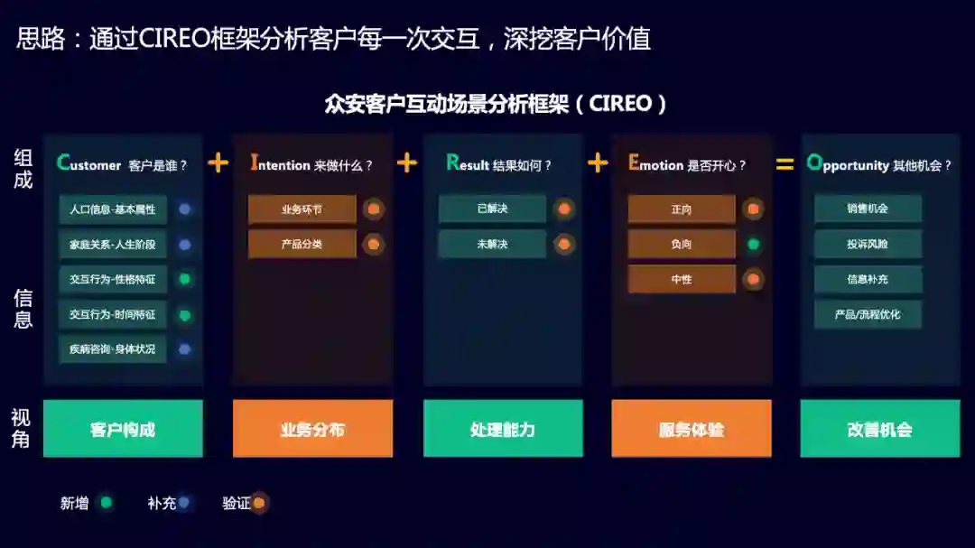 在自身的客服、外呼等场景中,众安把这个问题梳理了一下:先前很多的智能客服之所以并不成功,是因为过分夸大了机器的作用而忽略了人的灵活性和创造性。于是,这次,他们把人和机器的位置重新安排了一下:机器负责 24 小时「站岗」,源源不断地从文本、语音交互数据中挖掘客户意图、情绪等信息,然后把发现的问题交给人去解决。