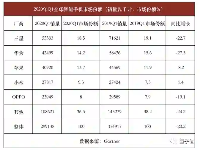 2020年第一季度,新冠病毒在全球范围内肆虐,智能手机市场一片惨淡。根据市场调研公司Gartner的数据,全球大型手机制造厂商中,有且只有小米实现了同比增长。