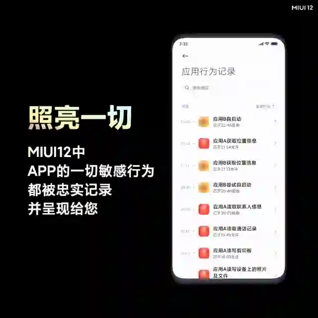 之后,MIUI 12测试版对外发布,照明弹、隐匿面具、空白通行证等功能,在行业中引发巨大反响,一众App的小动作不仅被曝光,而且被限制起来。