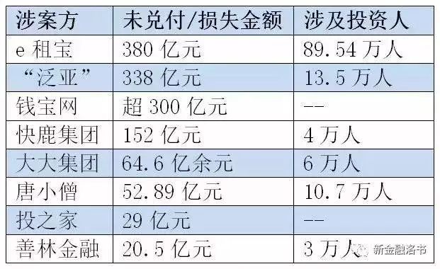 表:2015年-2018年八大知名爆雷平台涉及金额与投资人数