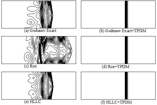 2. 在现有求解框架下提出了解决激波失稳的准则——移除横面质量通量的压力耗散。基于这个准则,给出了一个完整的抑制激波数值失稳的解决方案——TPDM。