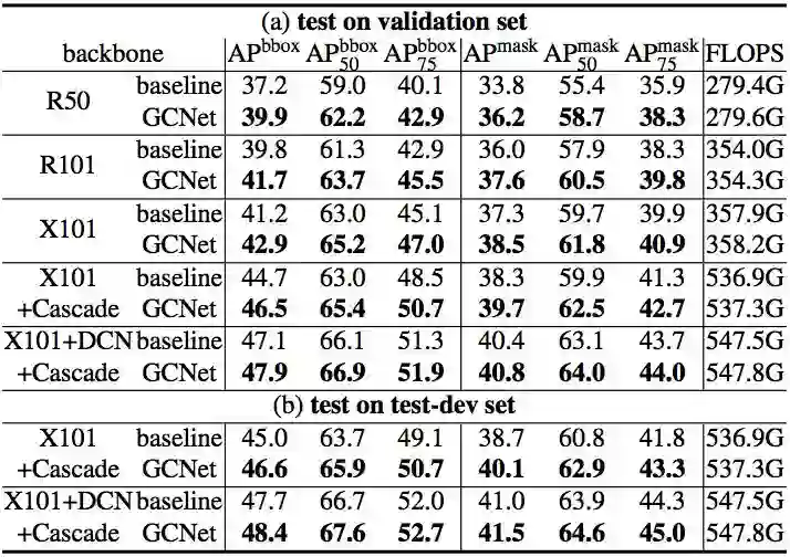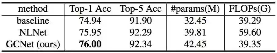 由于提出的 GC Block 是非常轻量级的,由此可以被应用于多层的多个残差模块中(一般被应用于 ResNet 的 c3~c5 层中),且仅会提升非常少的计算量(小于 0.3%),由此将 GC Block 应用到多层即可得到论文中提出的全局上下文建模网络(GCNet)。