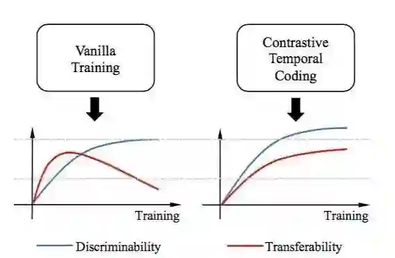 本文主要研究图像分类任务特征的两种重要性质:可判别性与可迁移性。首先,我们对于这两种特征的性质进行了时序上的分析,并且发现了两种性质之间是存在 trade-off 的。具体地说,我们发现可判别性会随着训练不断提升,但是在训练后期,可迁移性会显著降低。我们从信息瓶颈的视角解释了这一 trade-off ,并且发现了输入信息的“过度压缩”问题。基于信息论的解释,我们进而提出了一种学习方法“时序对比学习”,去缓解“过度压缩”问题。