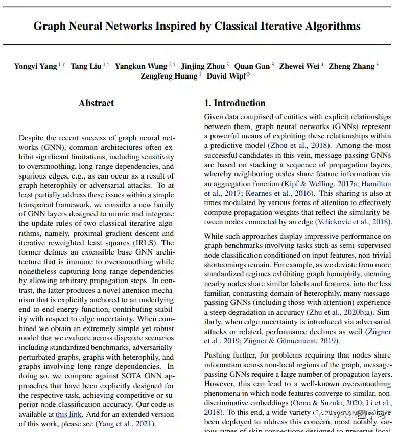 作者:Yang, Yongyi and Liu, Tang and Wang, Yangkun and Zhou, Jinjing and Gan, Quan and Wei, Zhewei and Zhang, Zheng and Huang, Zengfeng and Wipf, David