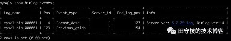 为了演示这个效果,笔者清空了本机上的所有binlog(执行reset master),现在如下图所示: