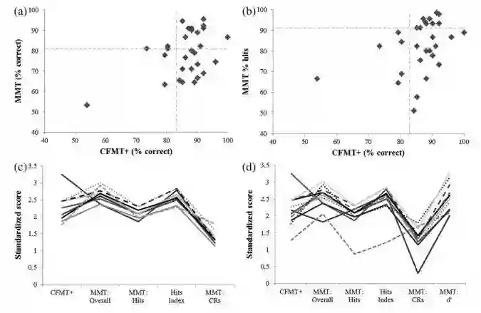 【导读】来自英国伯恩茅斯大学实验室的研究人员作出的贡献。近年来,人们对具有较高识别能力的人越来越感兴趣。然而,对这些人的识别主要依赖于一次单一的人脸记忆测试的标准性能。目前调查旨在审查30名警察的高级人脸识别技能的一致性,既包括进入同一过程的测试,也包括进入人脸处理不同组成部分的测试之间的一致性。各相关指标的总体绩效指标被发现,以孤立的测试分数确定不同的优秀表现。此外,不同表现的目标现值和目标缺席指数,表明信号检测措施是最有用的绩效指标。最后,观察到优越的记忆和匹配性能之间的分离。因此,超级识别器筛选程序应该包括总结相关测试多次尝试的总体指数,允许个人在不同(有时非常具体)的任务上进行高度排序。