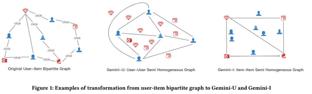 论文目标:将User-item交互的异构图转化为两个semi-Homogeneous图