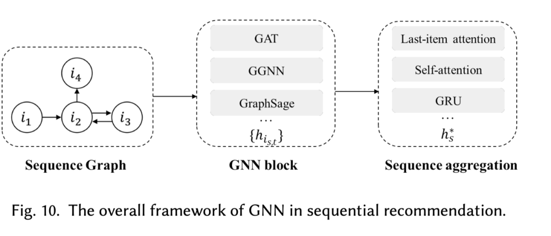 Graph construction:将sequence 转为graph,转化的方法决定了GNN的效果,一般将按时序出现的相邻K(一般K=2)个item之间进行连边
