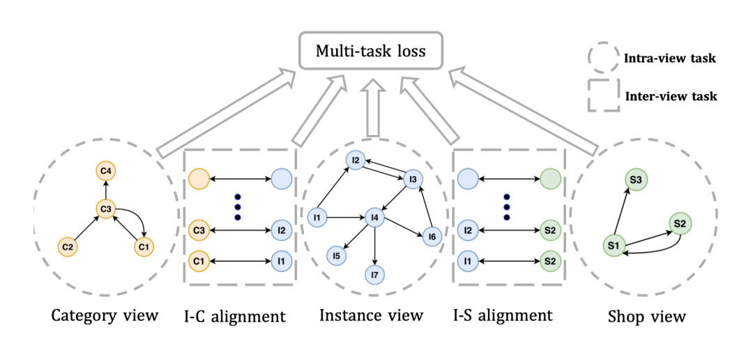 2.view间的任务,专注于学习不同view的结点的关系,采取对齐技术来将不同view的结点的映射到同一空间,并学习结点之间的关系