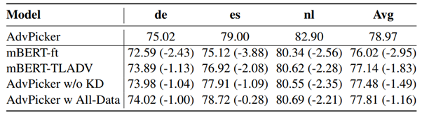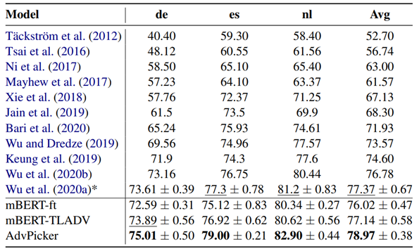 表1:模型性能比较(Zero-shot Cross-lingual NER)