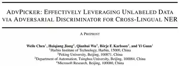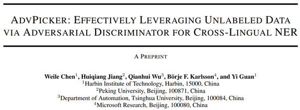 论文1:AdvPicker:基于对抗判别器高效利用无标注语料的跨语言命名实体识别模型