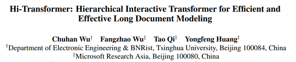 论文4:Hi-Transformer:一种具有层次化和交互式特点的长文档建模结构