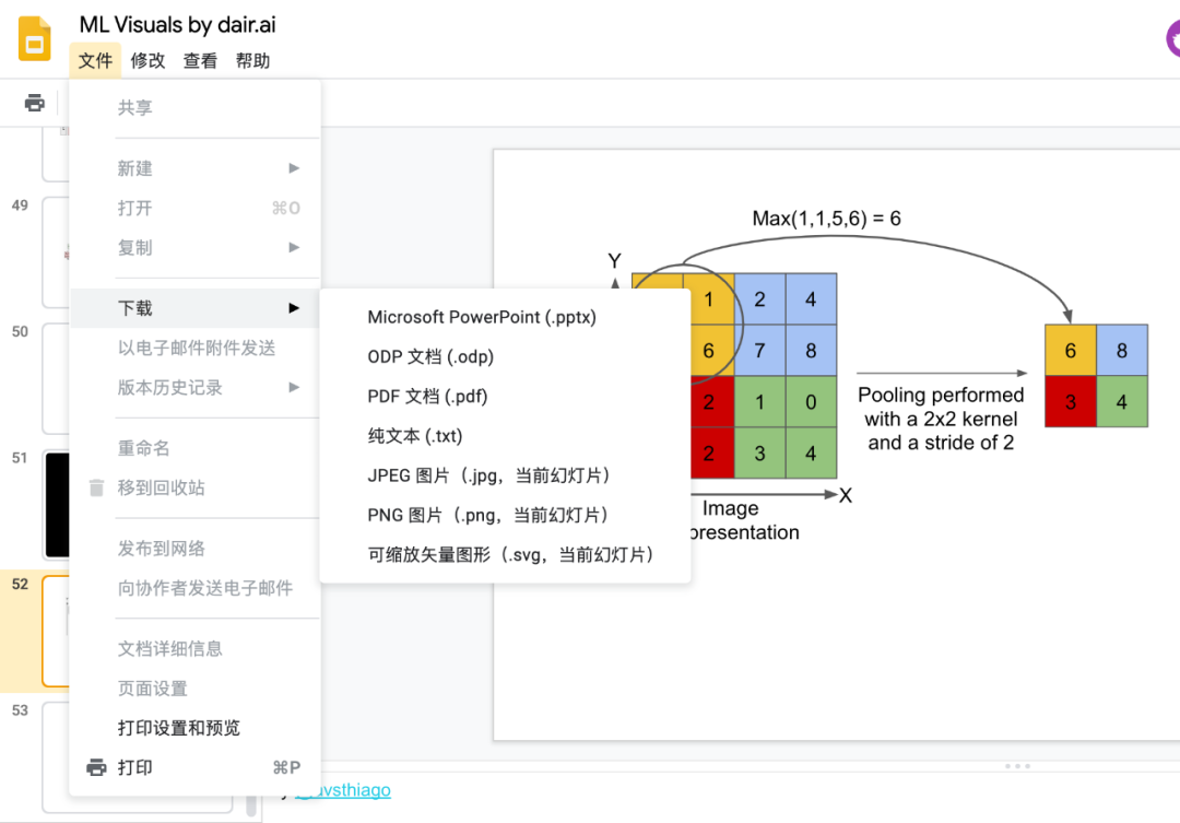 下载幻灯片的过程很简单,只需点击「文件→下载」,然后选择合适的格式即可。