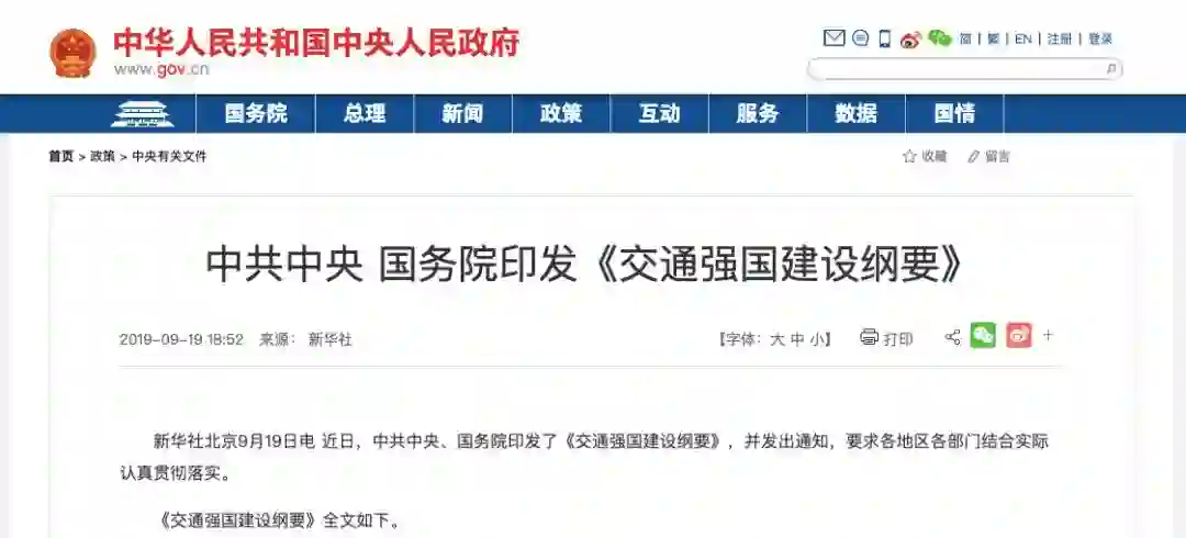 各地区各部门要提高对交通强国建设重大意义的认识,科学制定配套政策和配置公共资源,促进自然资源、环保、财税、金融、投资、产业、贸易等政策与交通强国建设相关政策协同,部署若干重大工程、重大项目,合理规划交通强国建设进程。