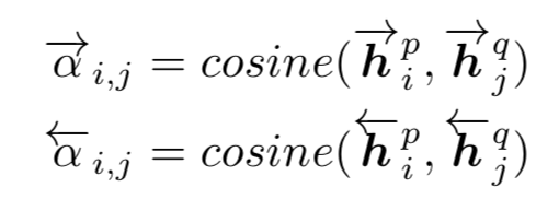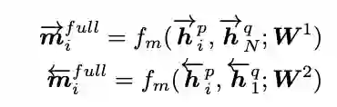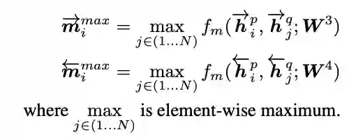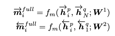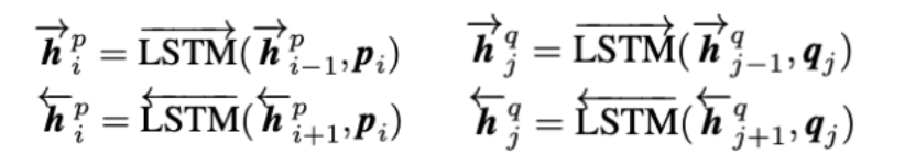 在匹配层,模型采用了4种方法进行匹配BiLSTM输出的上下文向量,每种都是双向的,下面仅从一个方向P->Q解释匹配算法,另一方向与其相同。