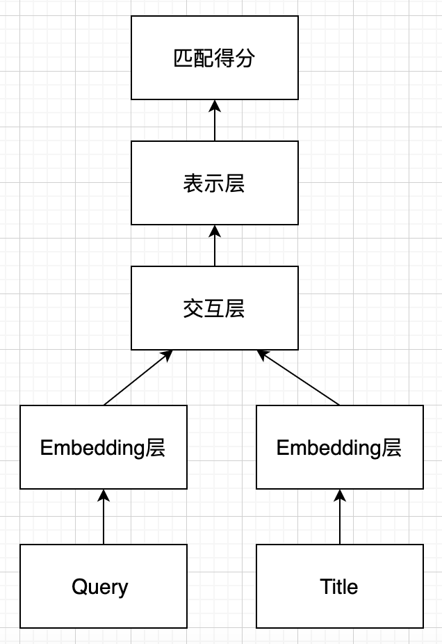 交互型模型摒弃后匹配的思路,假设全局的匹配度依赖于局部的匹配度,在输入层就进行词语间的先匹配,并将匹配的结果作为灰度图进行后续的建模,其基本模型结构如下图所示: