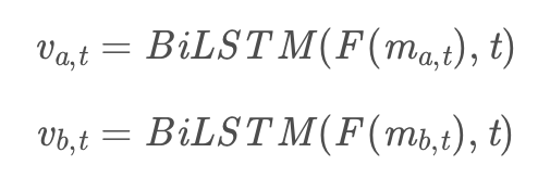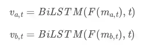 该模型的输入层与ESIM略有差别:字向量经过一层LSTM,取最后一个time作为char embedding ,然后与预训练好的词向量进行拼接,拼接之后经过BiLSTM,保存两个query(P,Q)的每个time-step值。