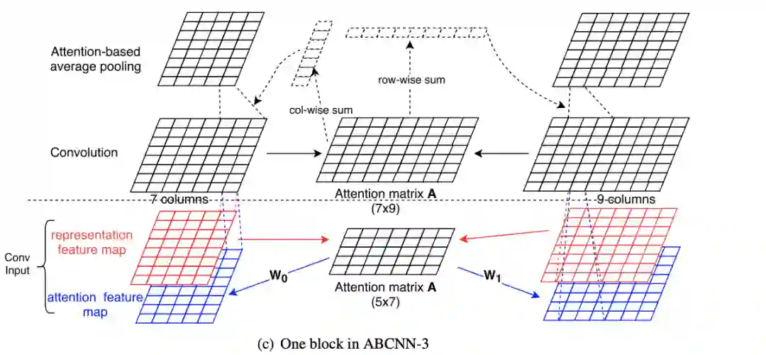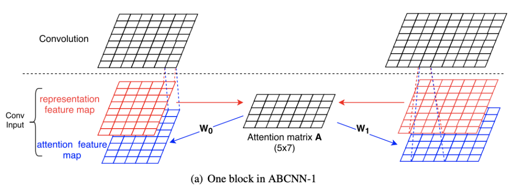 AB为Attention-Based,即基于注意力机制的卷积神经网络。这篇文章来自于慕尼黑大学信息语言处理中心,原文传送门:https://www.transacl.org/ojs/index.php/tacl/article/view/831/194。本文的作者也采用了CNN的结构来提取特征,并用attention机制进行进一步的特征处理,作者一共提出了三种attention的建模方法。