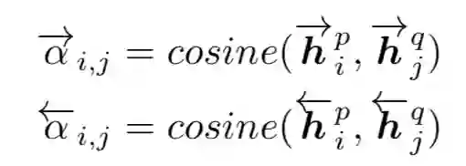 然后对两句各单词之间进行交互性计算,该词与另一句子联系越大,则计算出的值也会越大: