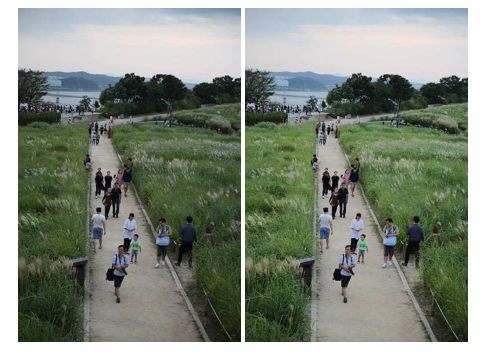 图一,两张图片都是对同一张原始图片的处理,其中(a)是手动模式下,(b)是自动模式下,我们可以很清楚地发现右图对比度更高,色彩质量更好。