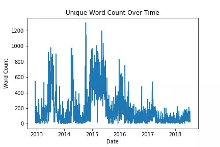 我觉得有趣的是,在 2013 年中期,我使用了很多单词。我不太确定我要做什么,但是当你把它删除到独特的单词时,那天我使用的 20,000 个单词,并不是很多很独特......