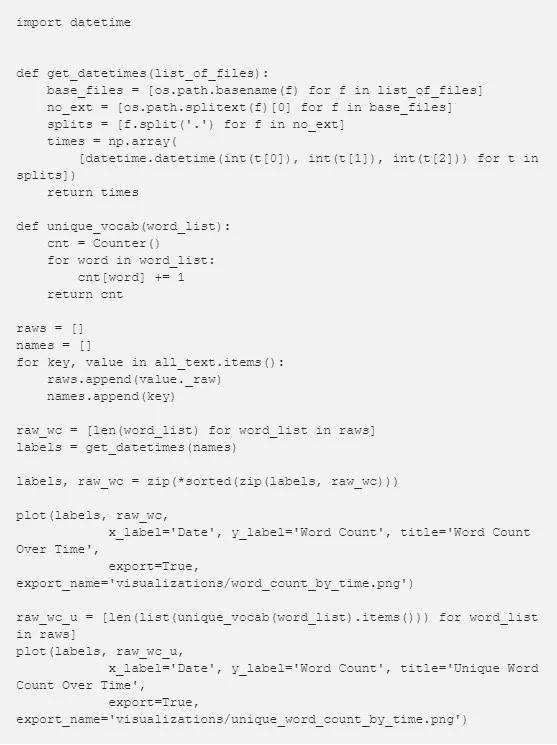 我想知道我的词汇用法随着时间的推移而变化。我们怎样才能产生呢?好吧,幸运的是我们给所有文件留了时间戳!