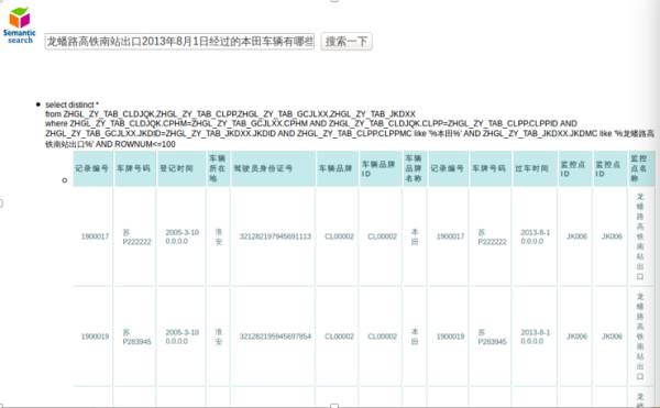 如用户提问“龙蟠路高铁南站出口 2013 年 8 月 1 日经过的本田车辆有哪些”,系统直接给出结果。