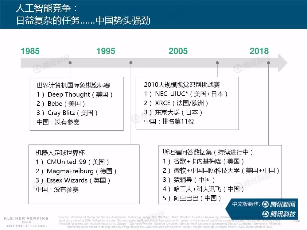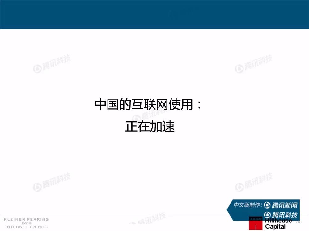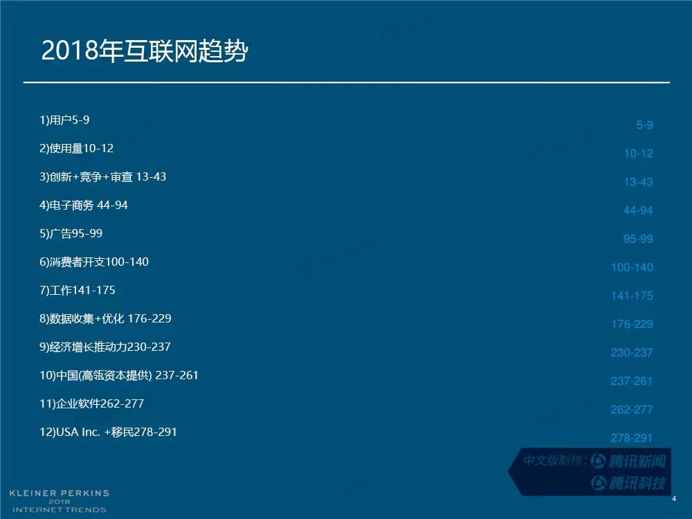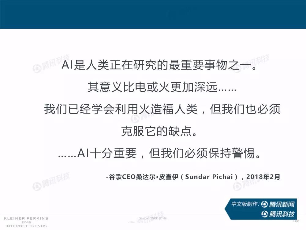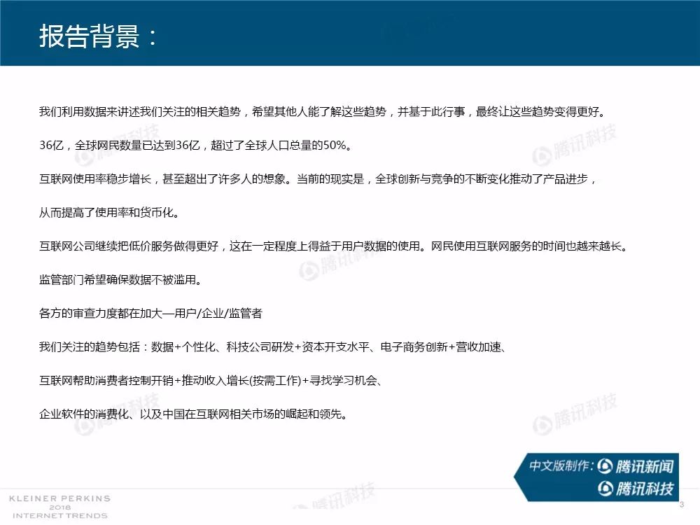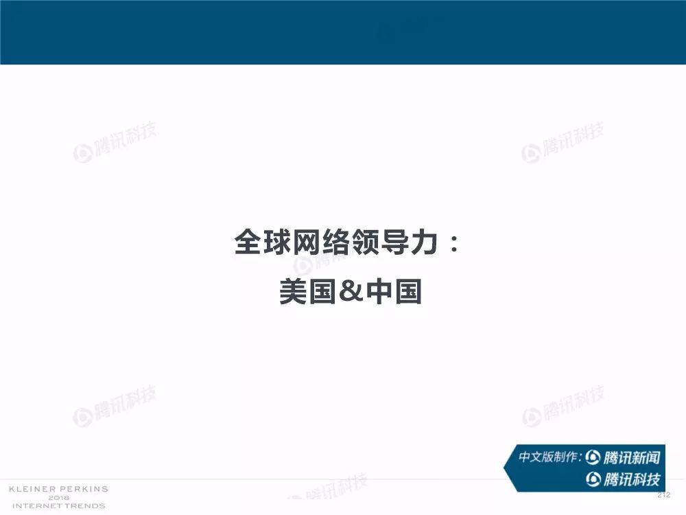 在过去,报告中精准的预测及判断力为她赢得了“互联网女皇”的美誉,这份报告因此也被奉为科技行业的“国情咨文”。今年发布的互联网趋势报告共有294张幻灯片,内容涵盖从美国智能手机用户的行为、到中国科技公司的竞争等方方面面,着重分析了中国互联网环境的变化,指出中国正在成为全球互联网巨头中心,与美国的差距不断缩小。以下为报告全文,欢迎收藏阅读。