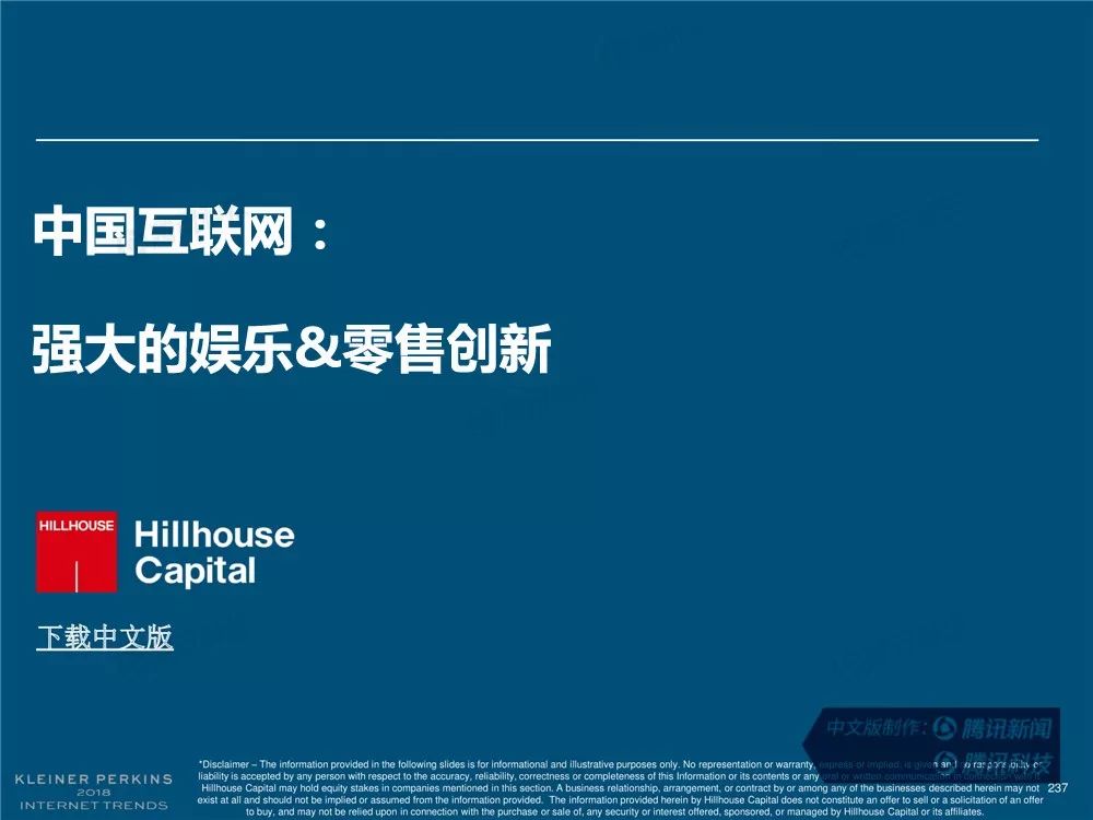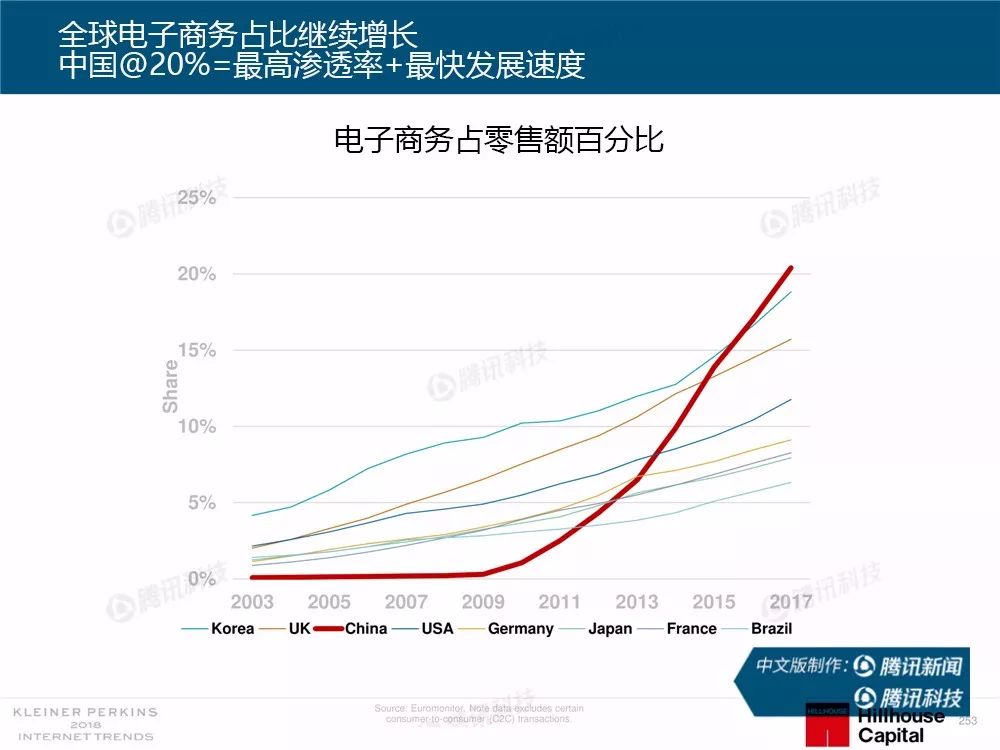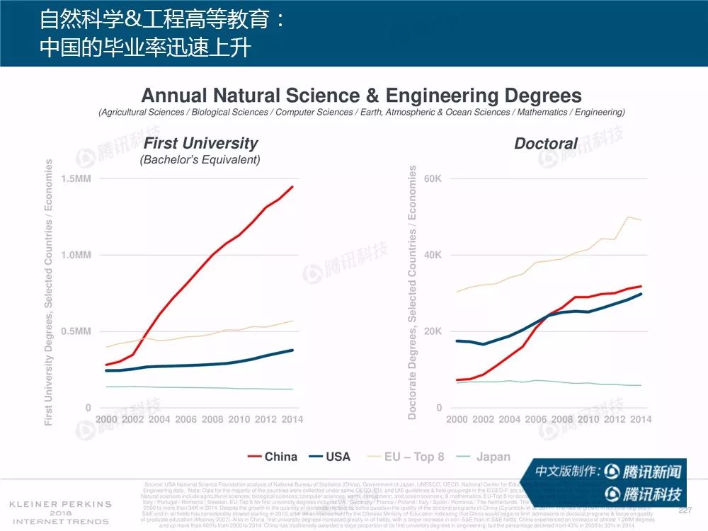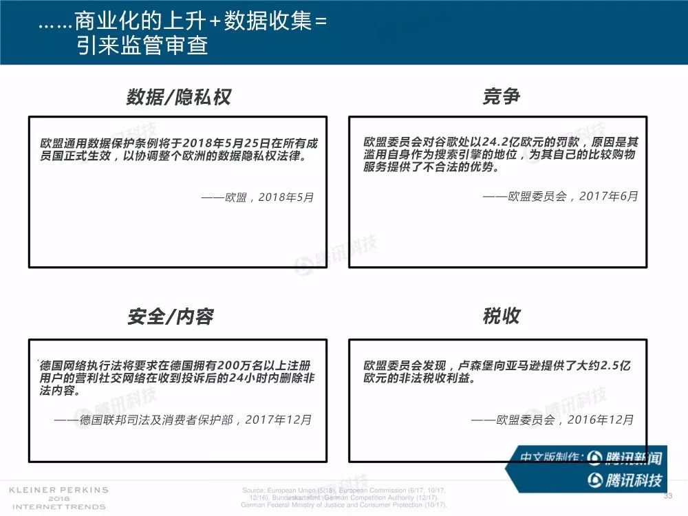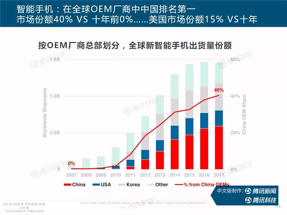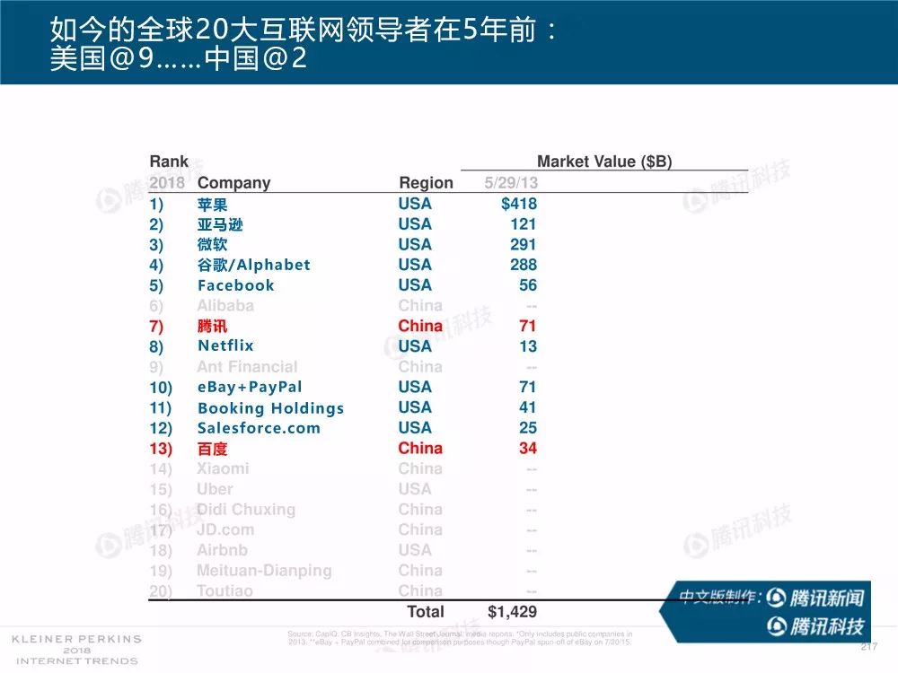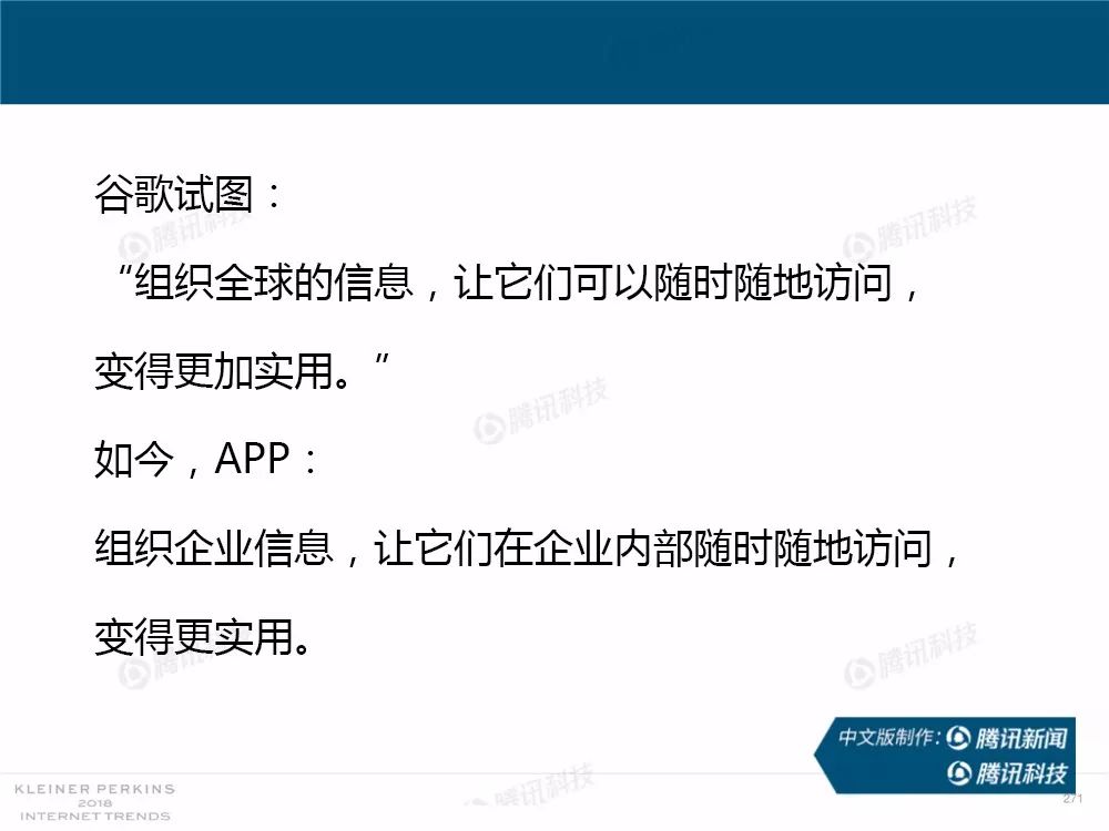 在过去,报告中精准的预测及判断力为她赢得了“互联网女皇”的美誉,这份报告因此也被奉为科技行业的“国情咨文”。今年发布的互联网趋势报告共有294张幻灯片,内容涵盖从美国智能手机用户的行为、到中国科技公司的竞争等方方面面,着重分析了中国互联网环境的变化,指出中国正在成为全球互联网巨头中心,与美国的差距不断缩小。以下为报告全文,欢迎收藏阅读。