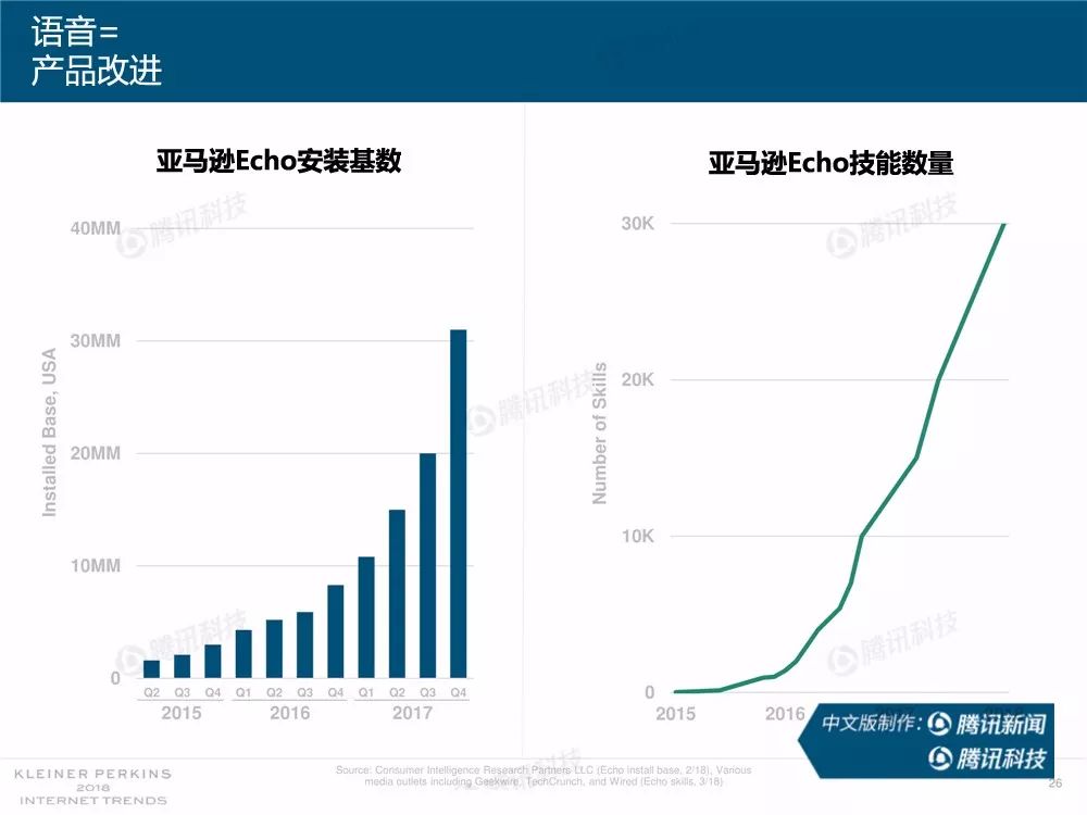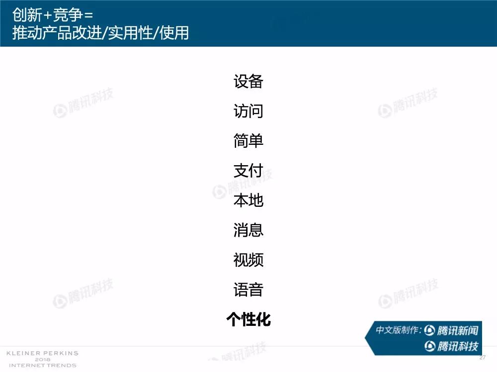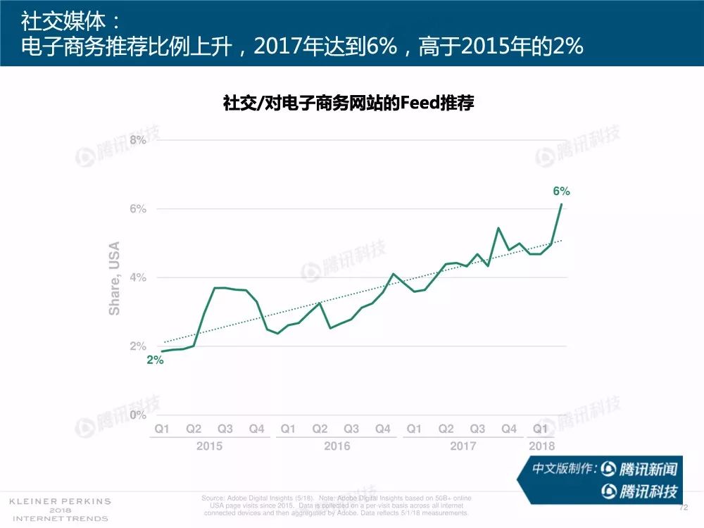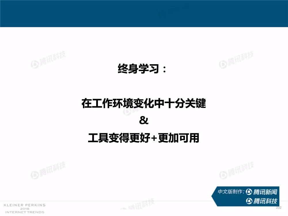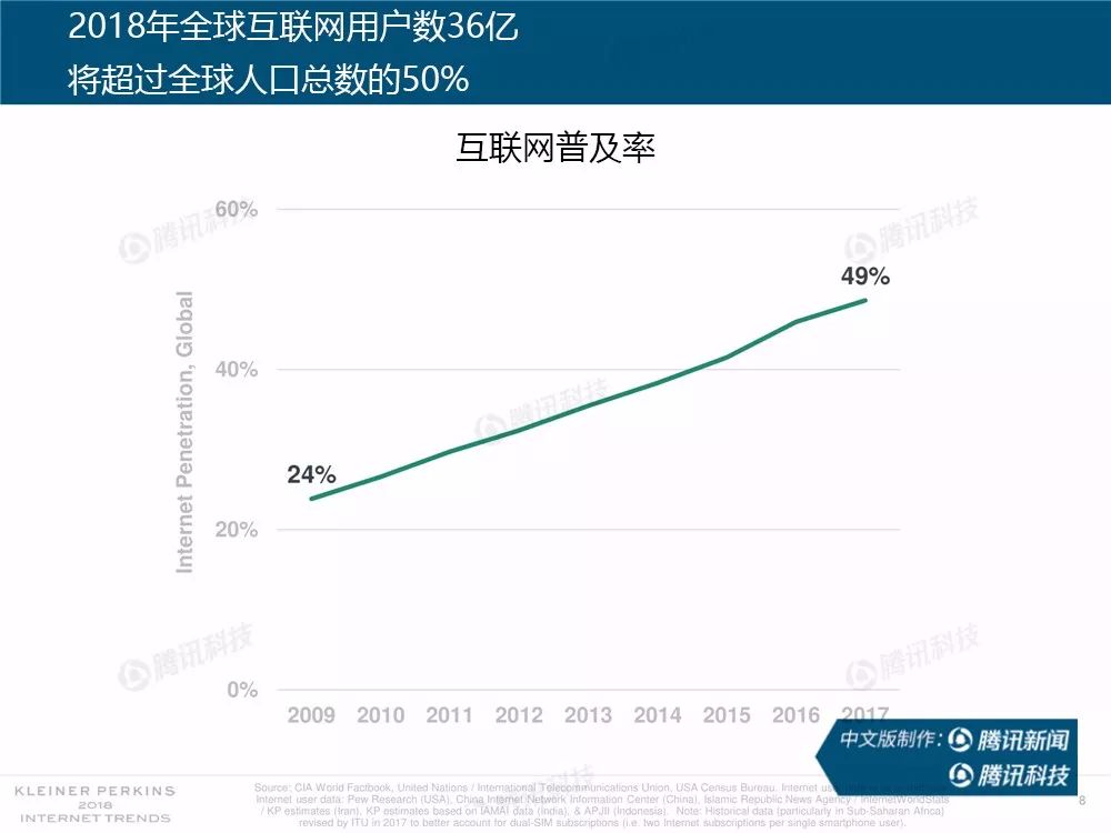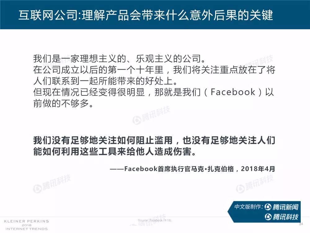 据外媒报道,有着“互联网女皇”之称的玛丽-米克尔(Mary Meeker)周三在美国加利福尼亚州帕洛斯韦尔德举办的Code大会上发布了2018年的互联网趋势报告。作为风投公司凯鹏华盈的合伙人之一,这是她第23次公布互联网报告。
